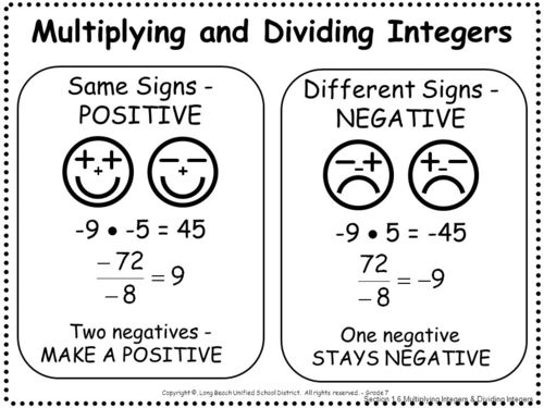 When multiplying or dividing a NEGATIVE and NEGATIVE number your result will be. Multiplying and Dividing Integers DRAFT. Multiplying and Dividing Integers Guided Notes includes a graphic organizer for multiplying and dividing integers.