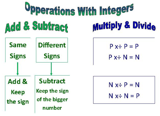 Be sure to distinguish between the patterns for adding and subtracting integers and for multiplying and dividing integers. Multiplying and Dividing Integers. Multiplying integers is normally where students learn the general rules for multiplying negatives and positives.